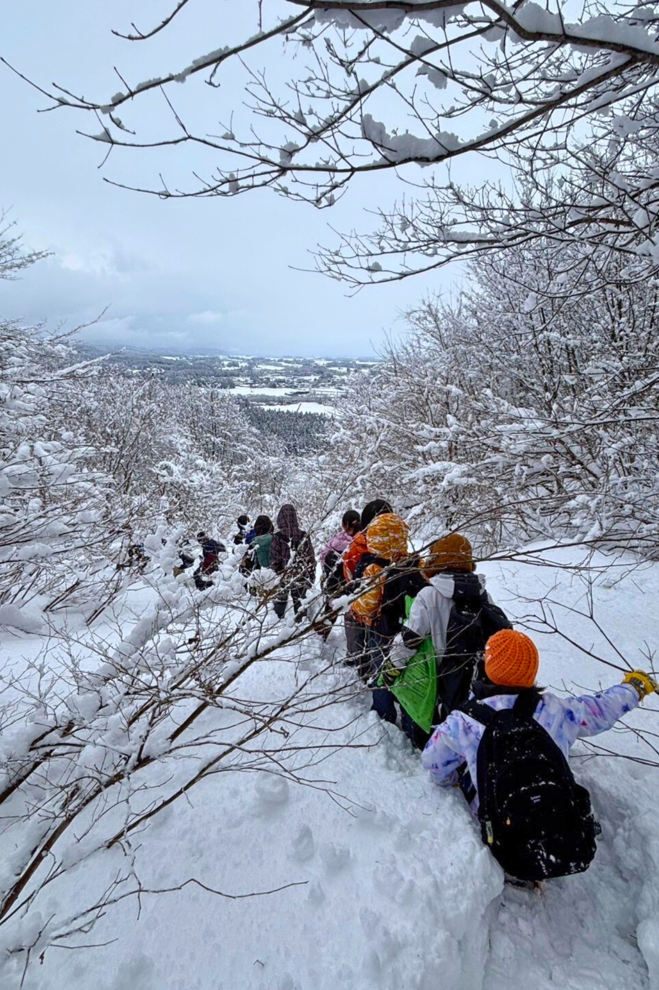 上手に歩くことや、遠くまで行くことが目的ではありません。雪の感触、息の白さ、道具の重さを感じながら、自然と、時間の積み重なりと向き合います。お昼も雪原でいただきます。